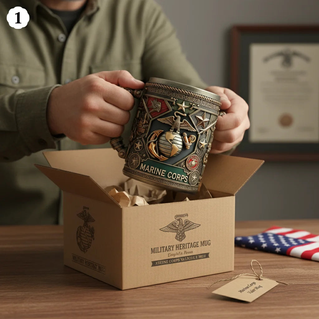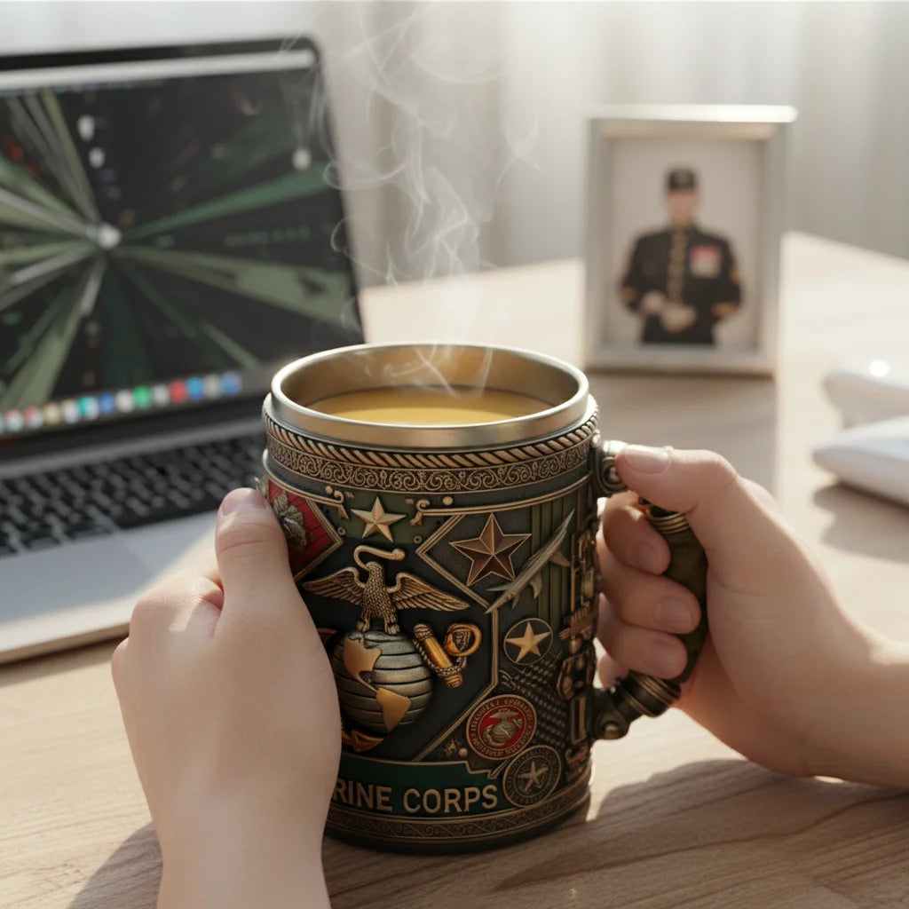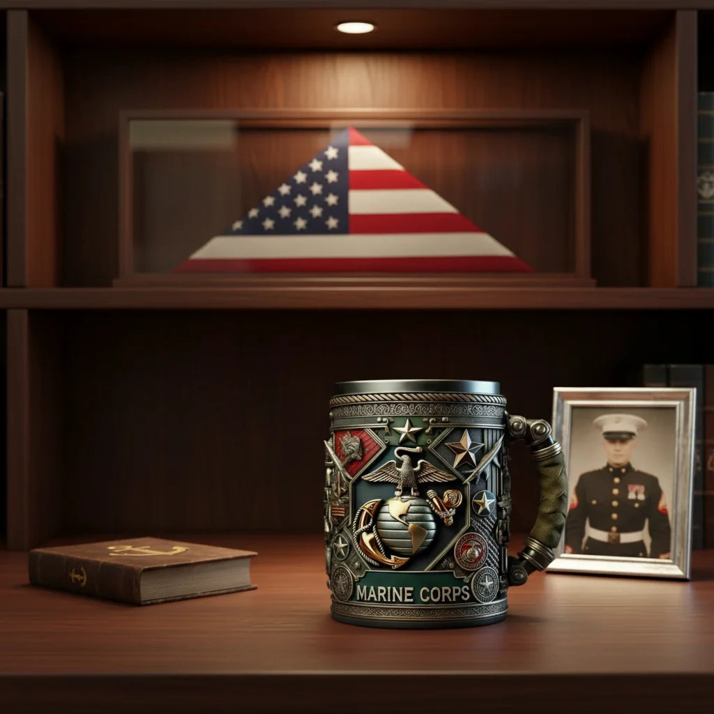 It's not just a mug; it's a masterpiece of military artistry! Featuring intricate 3D reliefs of the Marine Corps eagle, globe, and anchor, plus a rugged, textured handle, it's designed for true patriots and collectors. Every detail screams valor!