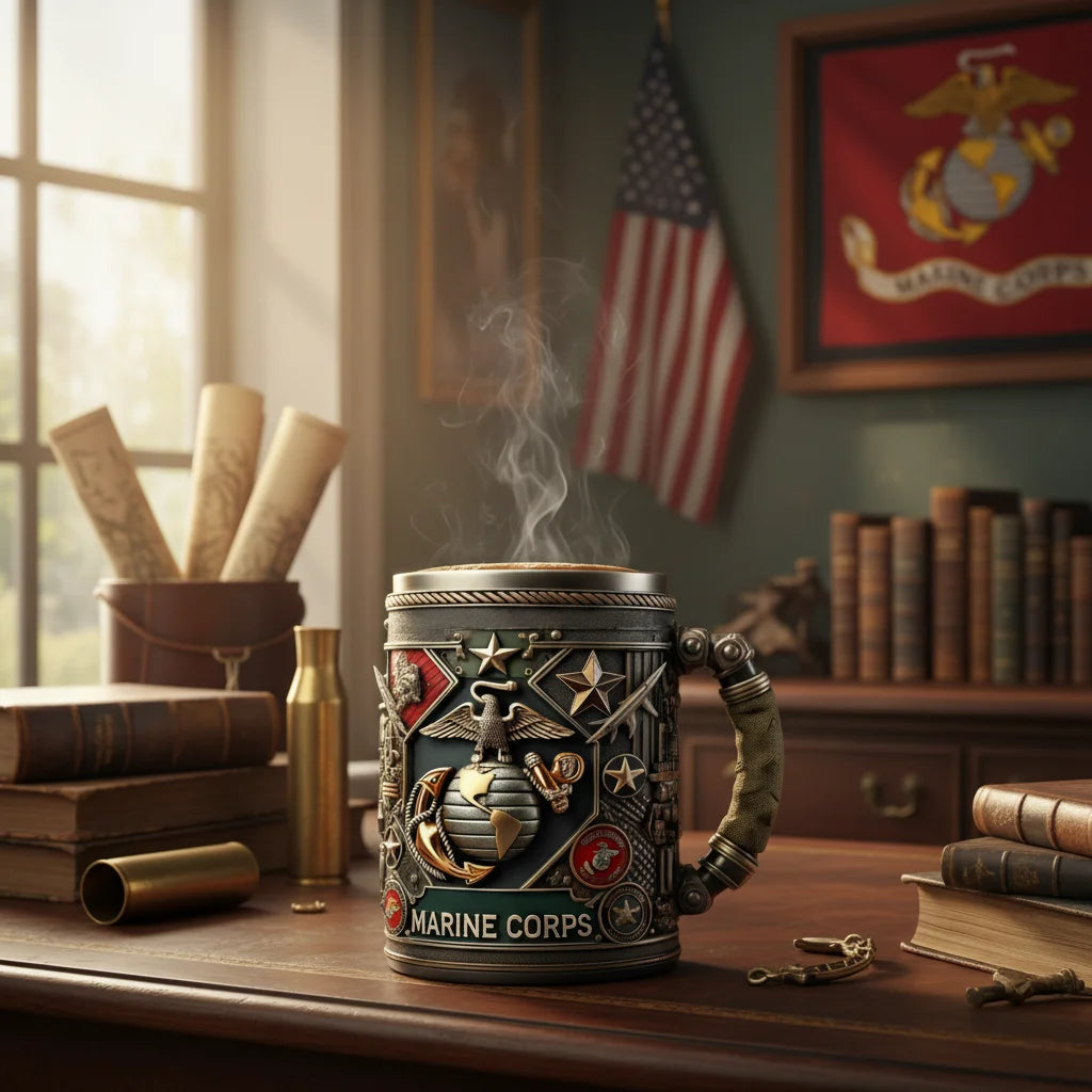 Every detail on this mug, from the iconic eagle, globe, and anchor to the rugged grip, celebrates the unwavering dedication and sacrifice of our heroes. It's more than a mug; it’s a tribute they'll cherish every day.